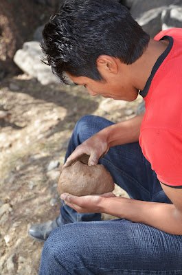 Marcial had some experience in sculpting. He began creating a face from the Cob and before long everyone was collaboratively adding to the personality of the face. Marcial exhibited a higher level of skill and indeed this was not his first sculpting project.