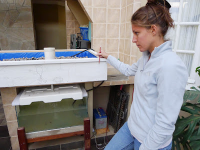 Four Tilapia are added to the tank. In six months they will grow to eating size.