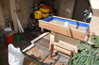 Gravel is added to the bed along with a pipe for water transfer between the fish tank and the rock bed.