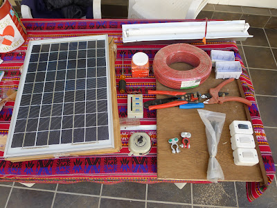 Materials. The solar panel is from the States, but can be purchased locally. There are plans for producing solar panels as part of a House of Hope project.