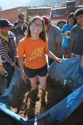 Mario invited Celeste and me to shovel dirt, sifting out the rocks in order to reach the desired smooth consistency. Before we knew it, we were joined by a few adults and teenagers from House of Hope. Gina joined a group off to the side, who were breaking pieces of straw in half. Soon, children, youth, and adults were working together to mix together the cob.