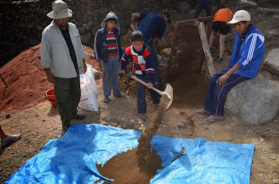 It was one thing to hear Mario talk; it was quite another to see his vision come into fruition. When we arrived on Saturday morning, some of the older men were already working to lay the wall's foundation using giant rocks found around the site.